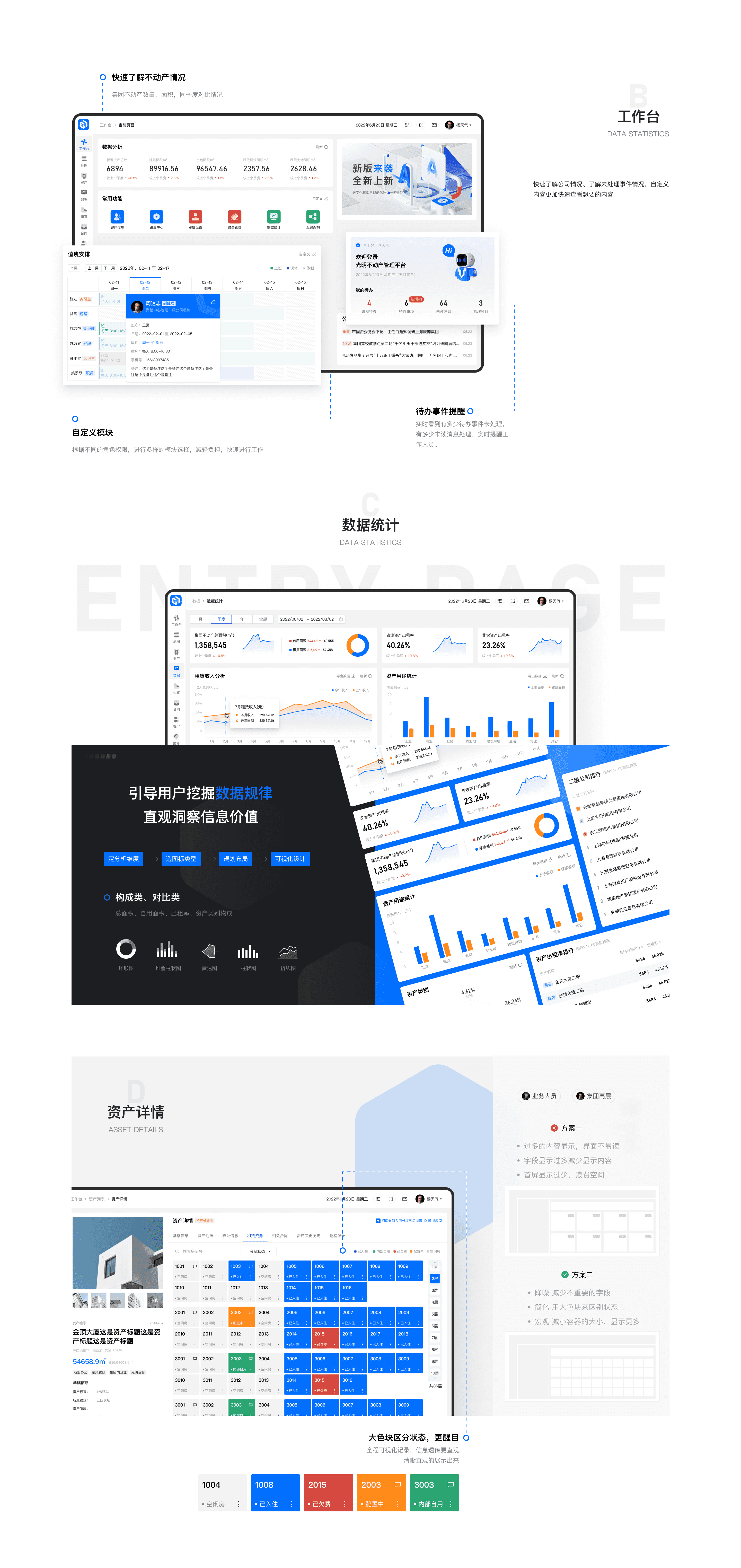 光明不动产项目为光明集团旗下不动产进行管理、统计、租赁、合同等服务开发 打通集团内部碎片化管理系统,减少不必要的沟通环节,不限场地随时随地的查看和管理等服务